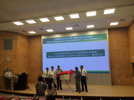 5月30日上午,深圳大學與北京師范大學認知神經科學與學習國家重點實驗室聯合組建的“腦疾病與認知科學研究中心”掛牌成立。中國科學院院士李朝義,北京師范大學認知神經科學與學習國家重點實驗室主任李武,香港大學腦與認知科學國家重點實驗室、遼寧師范大學、蘭州大學、華南師范大學、北京大學心理學系等在認知神經科學和腦疾病研究領域有重要影響的著名專家學者出席了揭牌儀式,其中龔啟勇、方方等六位專家在隨后舉行的“認知與情感障礙的腦機制與影像學”學術研討會中發表了主題演講,反響熱烈。