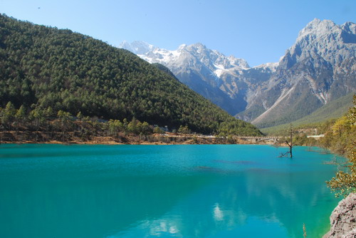 一踏上麗江的土地,迎面就被溫暖的陽光籠罩,呼吸著新鮮的空氣,開闊的視野被豐富的色彩填充,心情立刻就變得柔軟起來。入住到早已預定好的酒店內,我們隨后就來到了麗江市內的“黑龍潭”公園,公園內有近76萬平方米面積的湖面,形狀就像一彎新月,湖中心有木雕的亭子,庭與湖岸另一側各有一汪珍珠泉出水口。公園內建筑風格古樸典雅,那是因為納西人崇尚自然,所以造型盡量保持事物的原型,以求人與自然的和諧一體。值得一提的是,珍珠泉出水口處,有無數小泉眼,對著泉水大喊一聲,在聲波的震蕩下,湖底的小氣泡從小泉眼中不斷涌出,造成湖面微波蕩漾的奇妙景觀,讓人大開眼界。