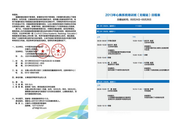 中華放射學會CARE繼續教育心胸部無錫站會議通知