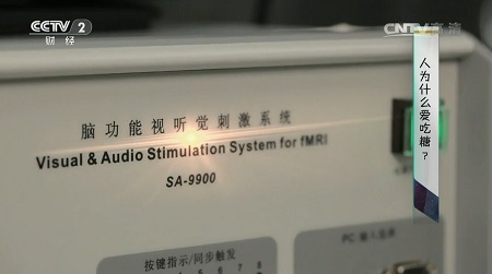9月9日CCTV財經頻道節目通過功能磁共振(fMRI)實驗解釋人為什么愛吃糖,北京大學第六醫院實驗全程使用深圳美德醫療自主研發的腦功能視聽覺刺激系統。通過各種糖果圖片刺激被試,發現富含多巴胺受體區域的輪狀體功能活動明顯增高,證明糖果激發了人體的獎勵系統,增加了多巴胺的分泌,使人體會到幸福感。